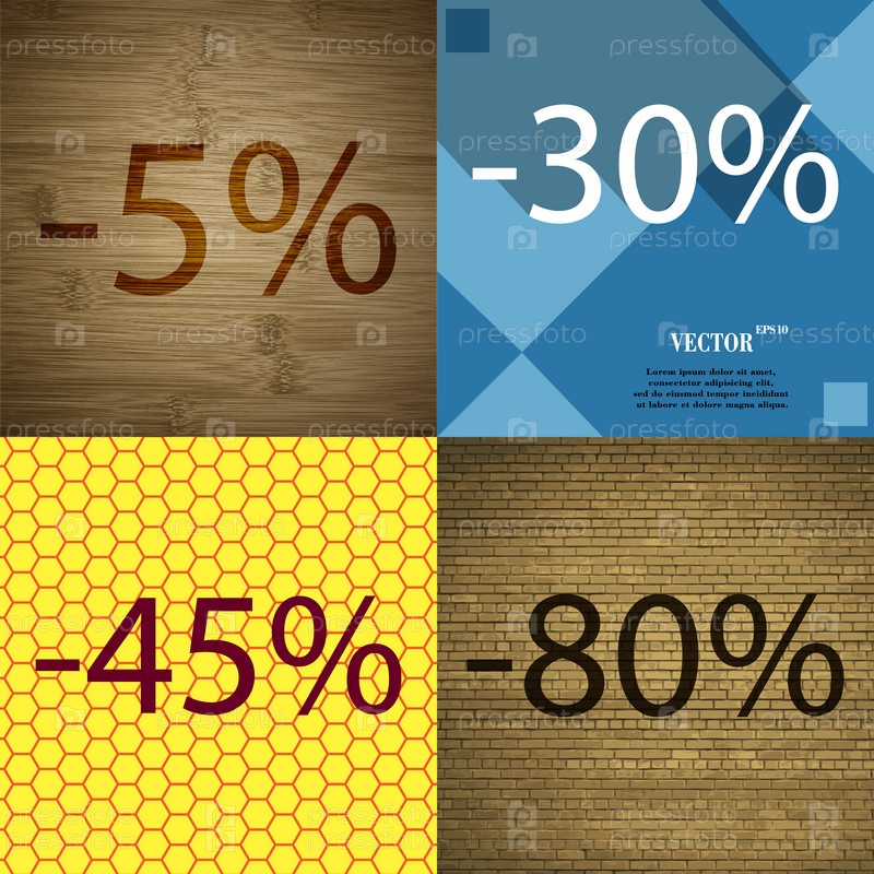 30, 45, 80 значок. Набор процент скидки на Абстрактные фоны. Вектор