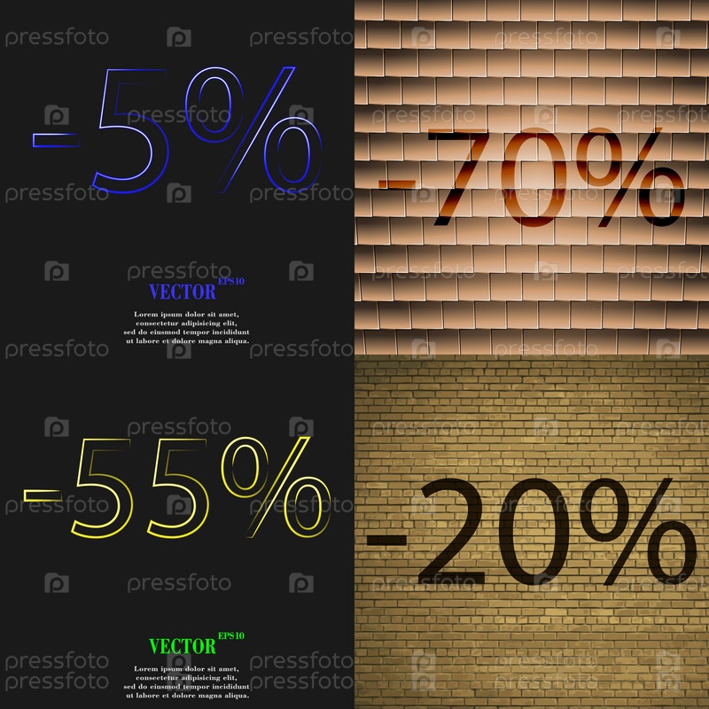 70, 55, 20 значок. Набор процент скидки на Абстрактные фоны. Вектор
