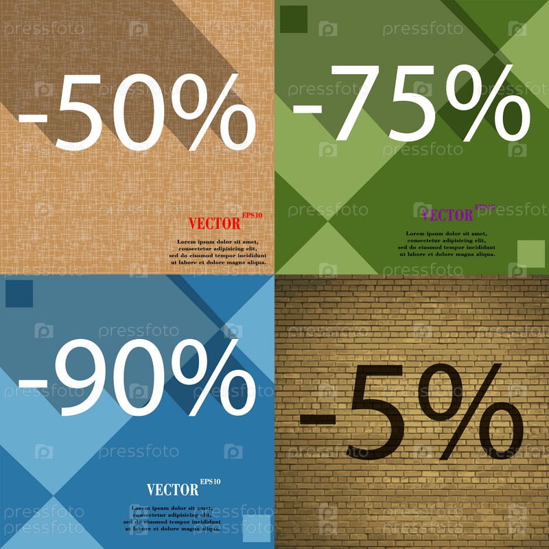 75, 90, 5 значок. Набор процент скидки на Абстрактные фоны. Вектор