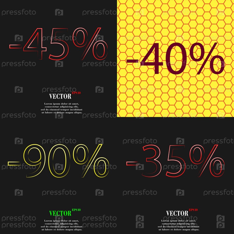 40, 90, 35 значок. Набор процент скидки на Абстрактные фоны. Вектор