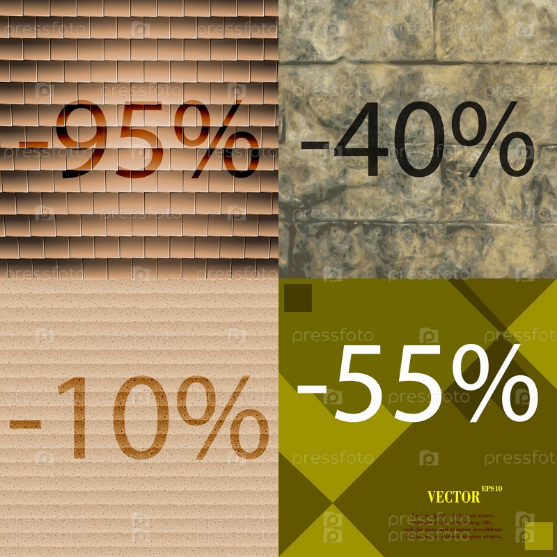40, 10, 55 значок. Набор процент скидки на Абстрактные фоны. Вектор