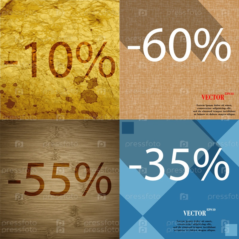 60, 55, 35 значок. Набор процент скидки на Абстрактные фоны. Вектор