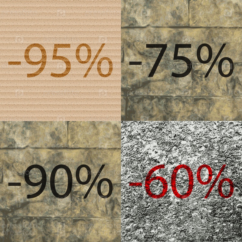 75, 90, 60 значок. Набор процент скидки на Абстрактные фоны. Вектор