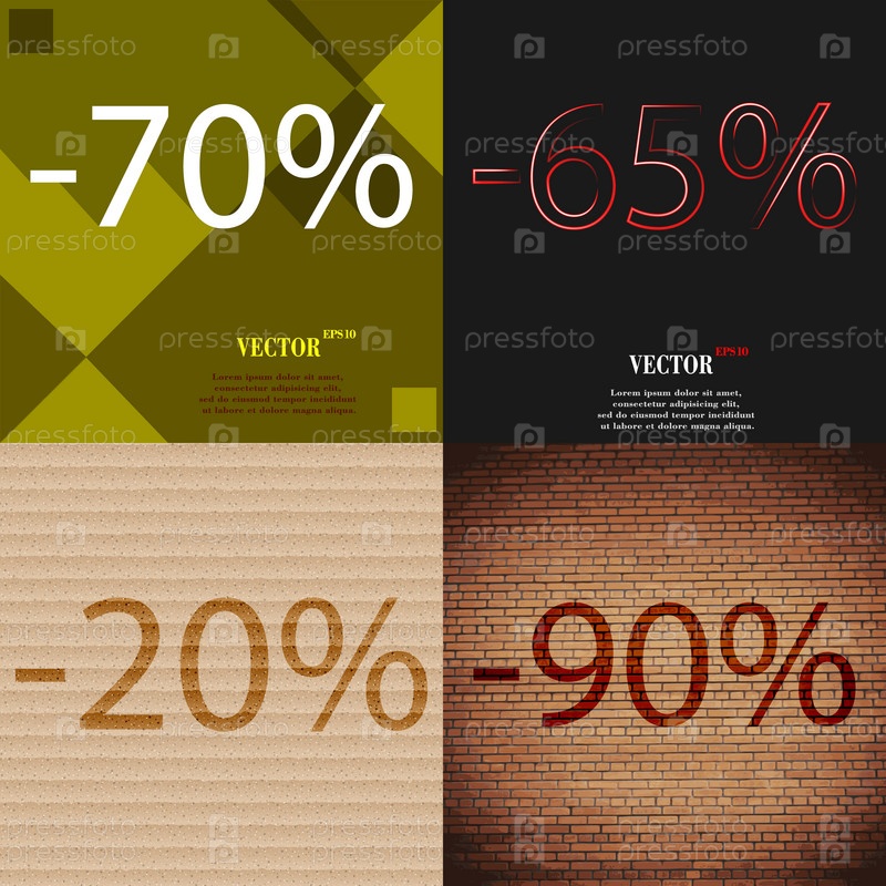 65, 20, 90 значок. Набор процент скидки на Абстрактные фоны. Вектор