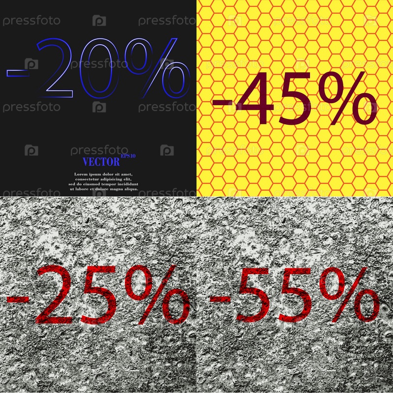 45, 25, 55 значок. Набор процент скидки на Абстрактные фоны. Вектор