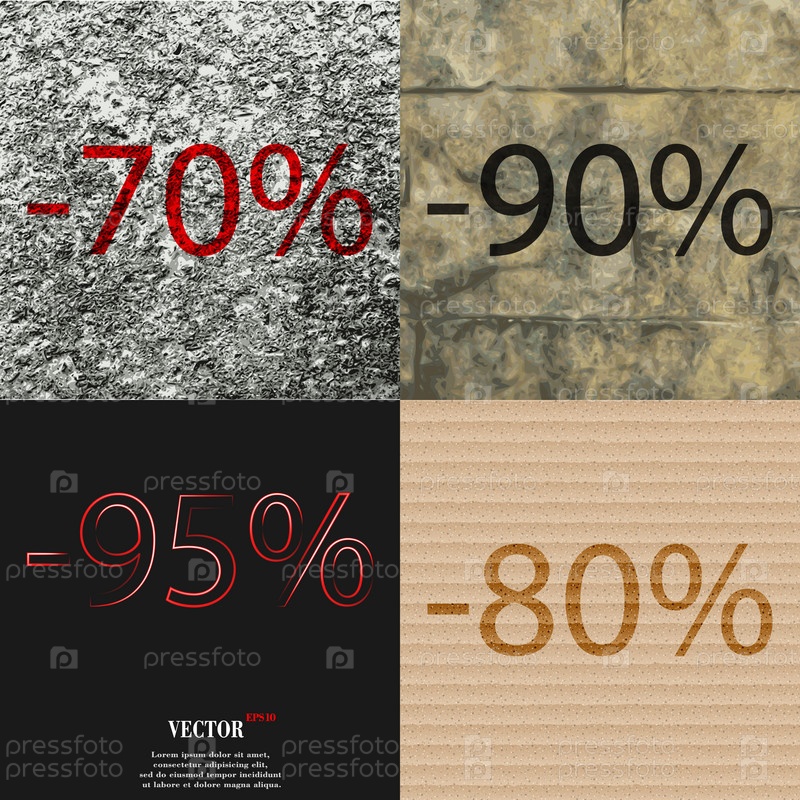 90, 95, 80 значок. Набор процент скидки на Абстрактные фоны. Вектор