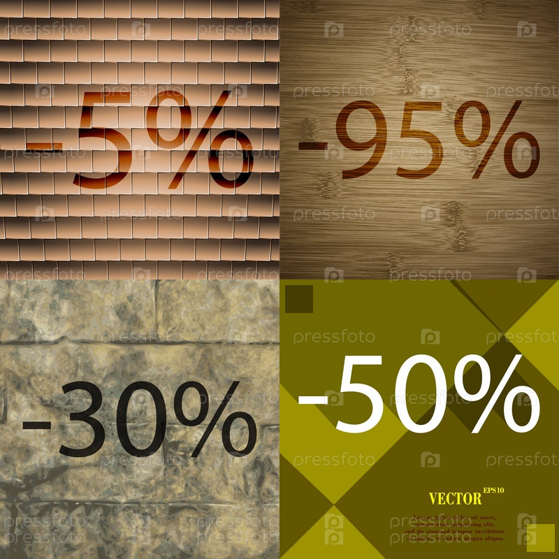 95, 30, 50 значок. Набор процент скидки на Абстрактные фоны. Вектор