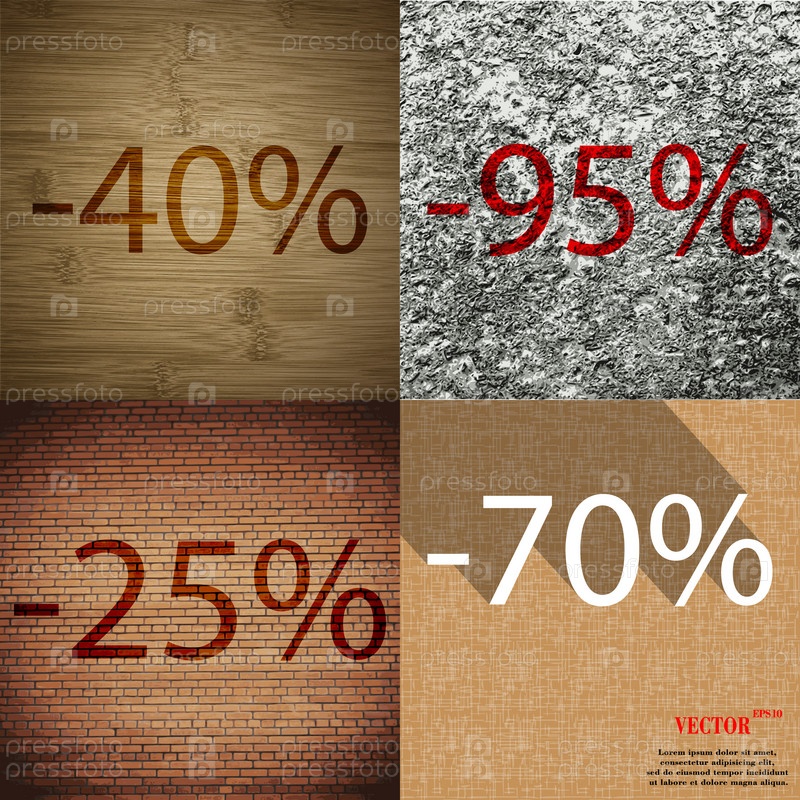 95, 25, 70 значок. Набор процент скидки на Абстрактные фоны. Вектор