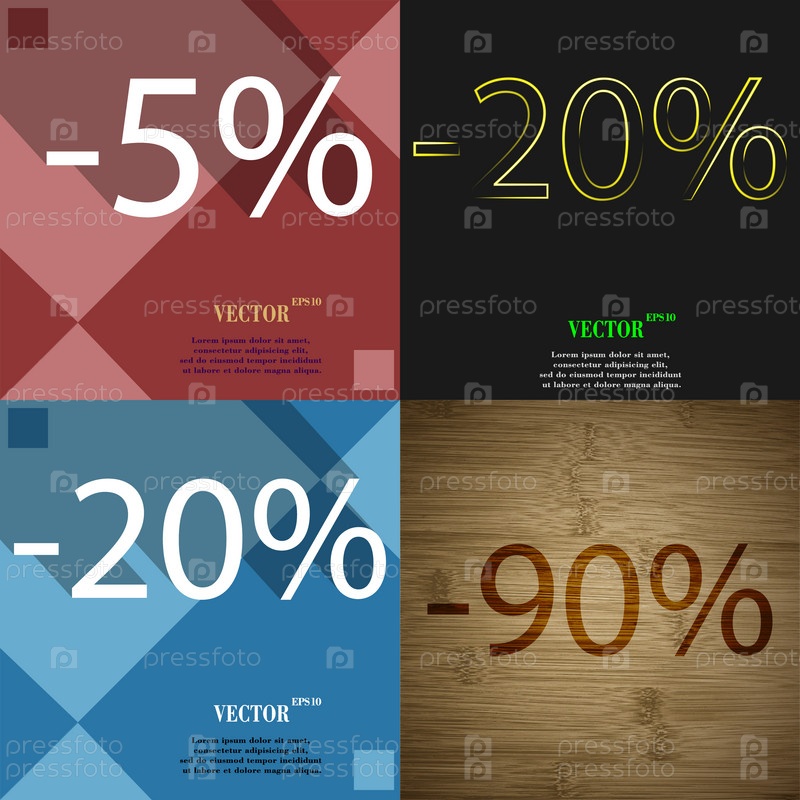 20, 90 значок. Набор процент скидки на Абстрактные фоны. Вектор