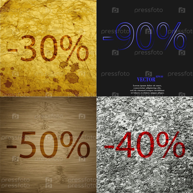 90, 50, 40 значок. Набор процент скидки на Абстрактные фоны. Вектор