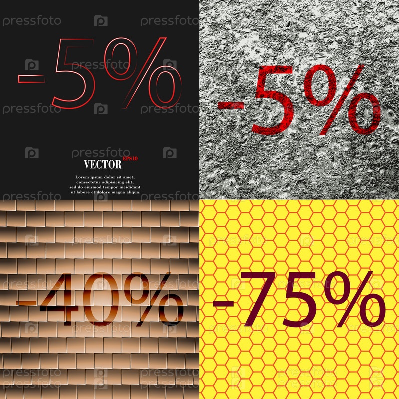 5, 40, 75 значок. Набор процент скидки на Абстрактные фоны. Вектор