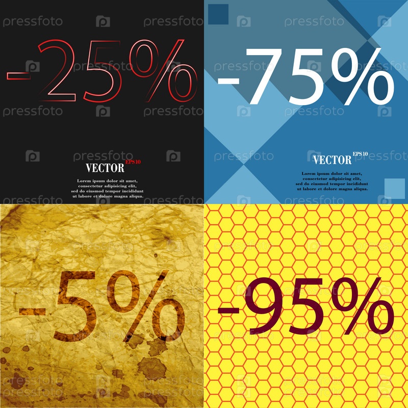 75, 5, 95 значок. Набор процент скидки на Абстрактные фоны. Вектор