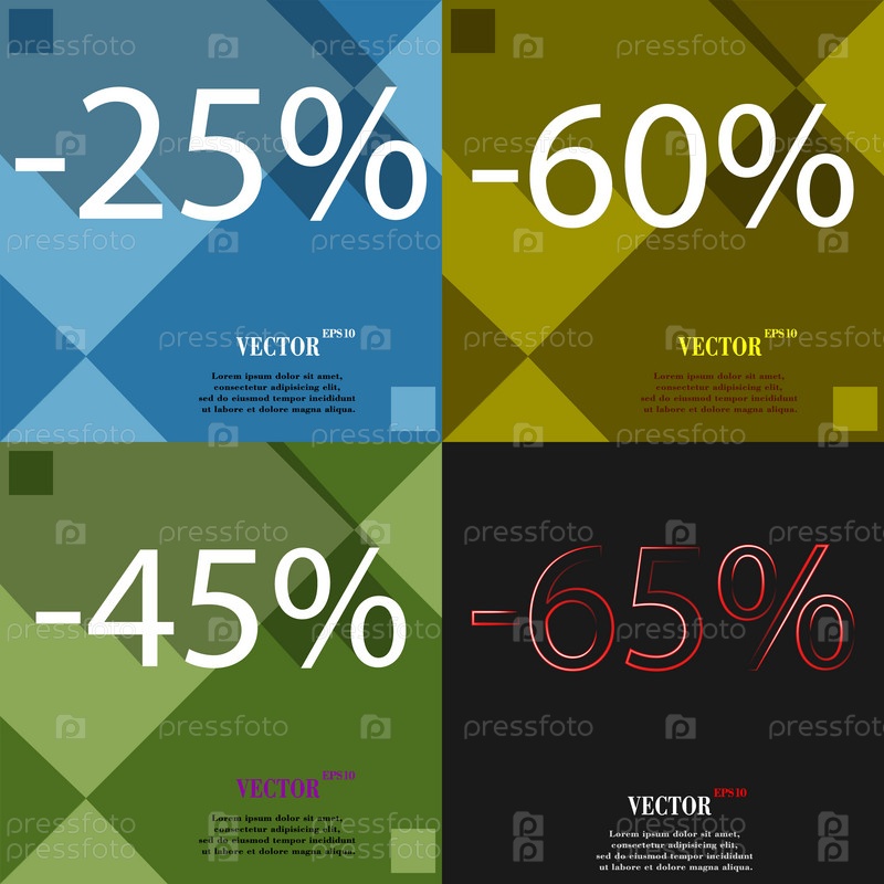 60, 45, 65 значок. Набор процент скидки на Абстрактные фоны. Вектор