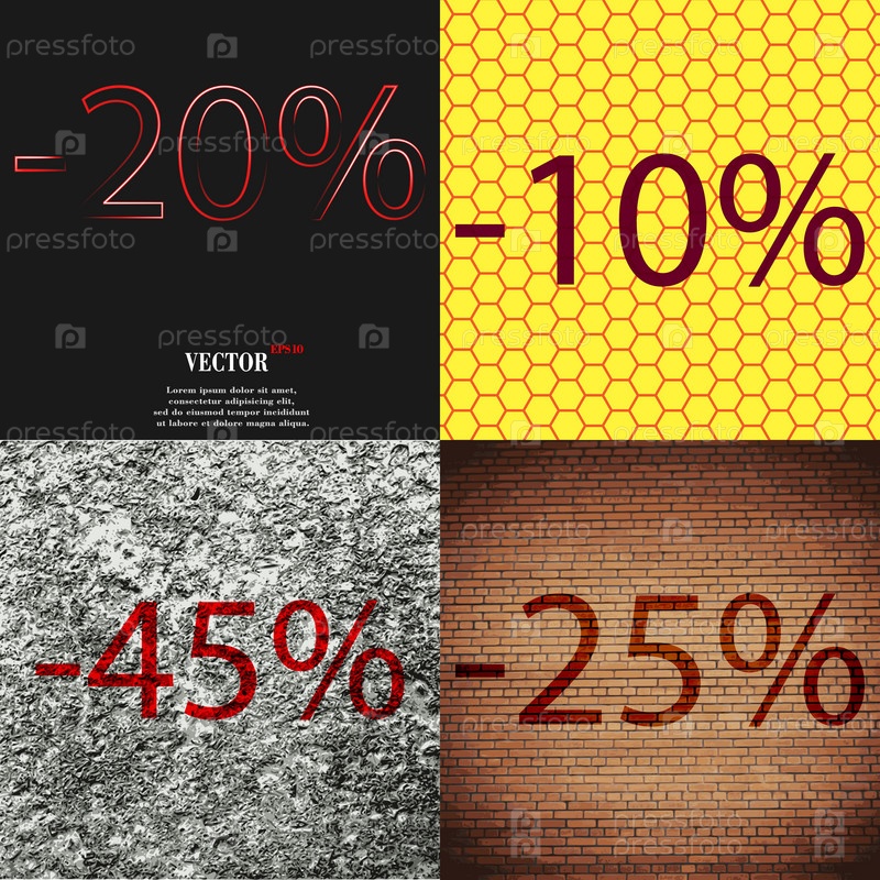 10, 45, 25 значок. Набор процент скидки на Абстрактные фоны. Вектор