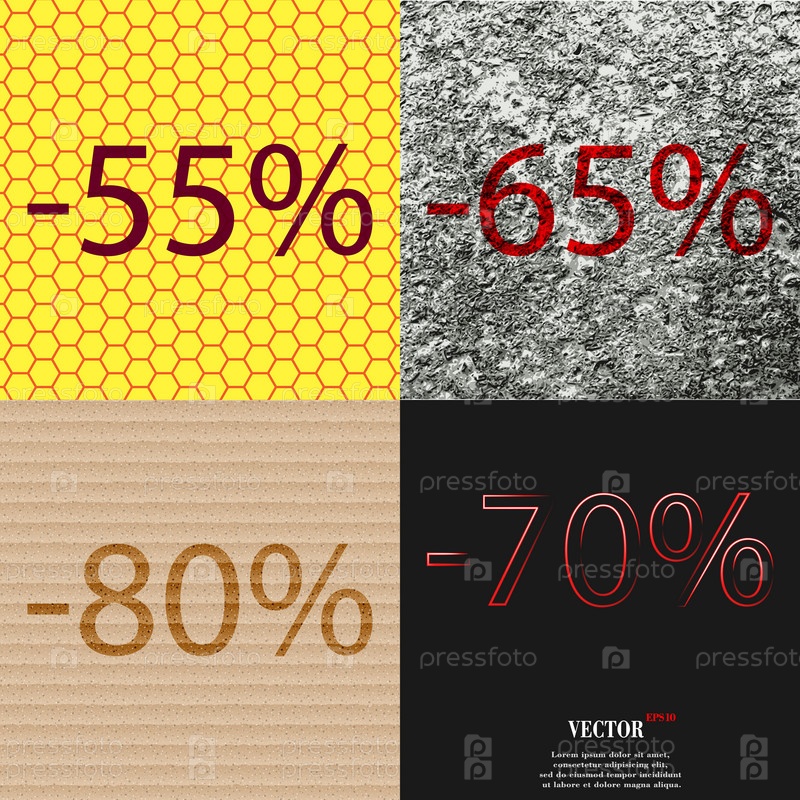 65, 80, 70 значок. Набор процент скидки на Абстрактные фоны. Вектор