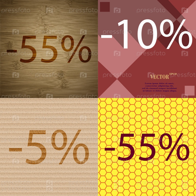 10, 5, 55 значок. Набор процент скидки на Абстрактные фоны. Вектор