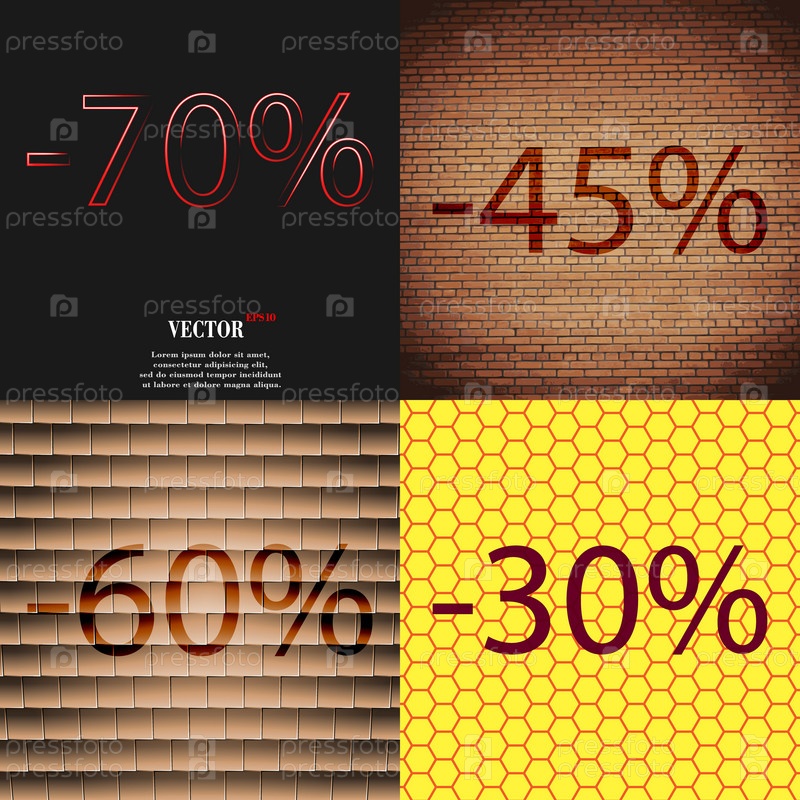 45, 60, 30 значок. Набор процент скидки на Абстрактные фоны. Вектор