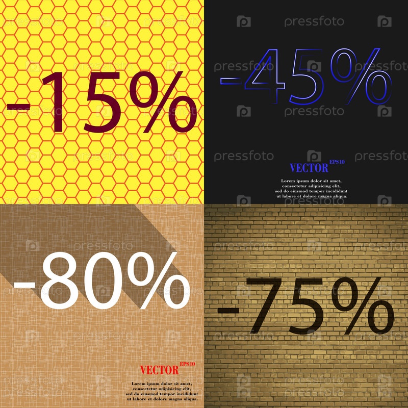 45, 80, 75 значок. Набор процент скидки на Абстрактные фоны. Вектор