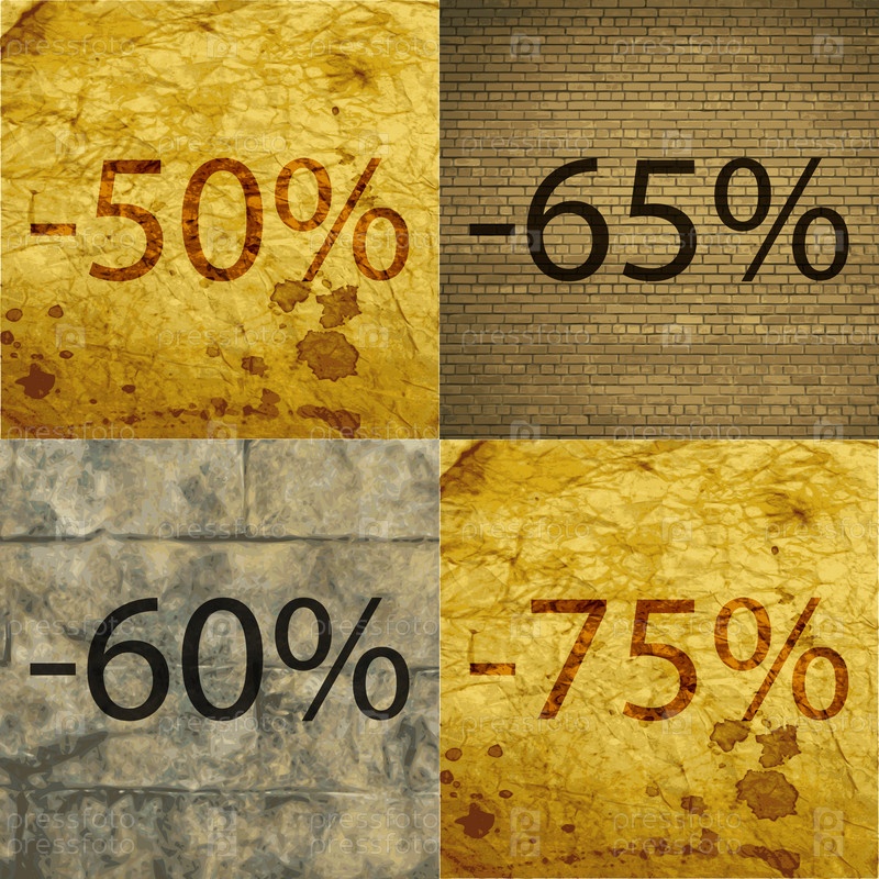 65, 60, 75 значок. Набор процент скидки на Абстрактные фоны. Вектор
