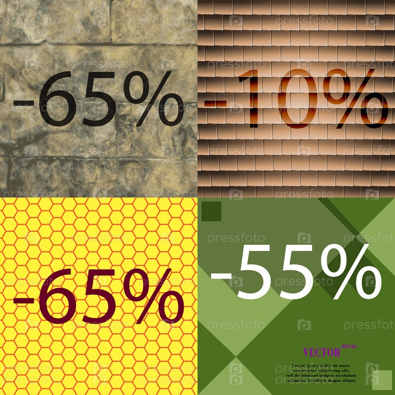 10, 65, 55 значок. Набор процент скидки на Абстрактные фоны. Вектор