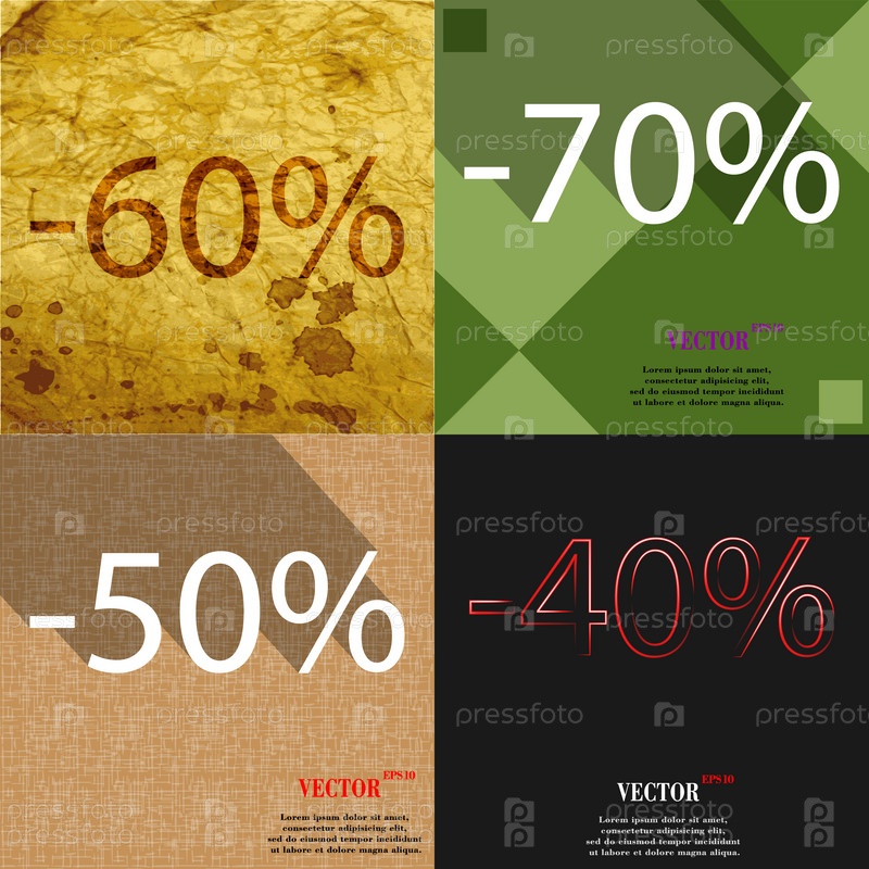 70, 50, 40 значок. Набор процент скидки на Абстрактные фоны. Вектор