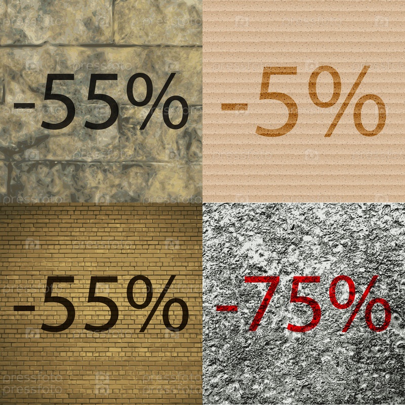 5, 55, 75 значок. Набор процент скидки на Абстрактные фоны. Вектор