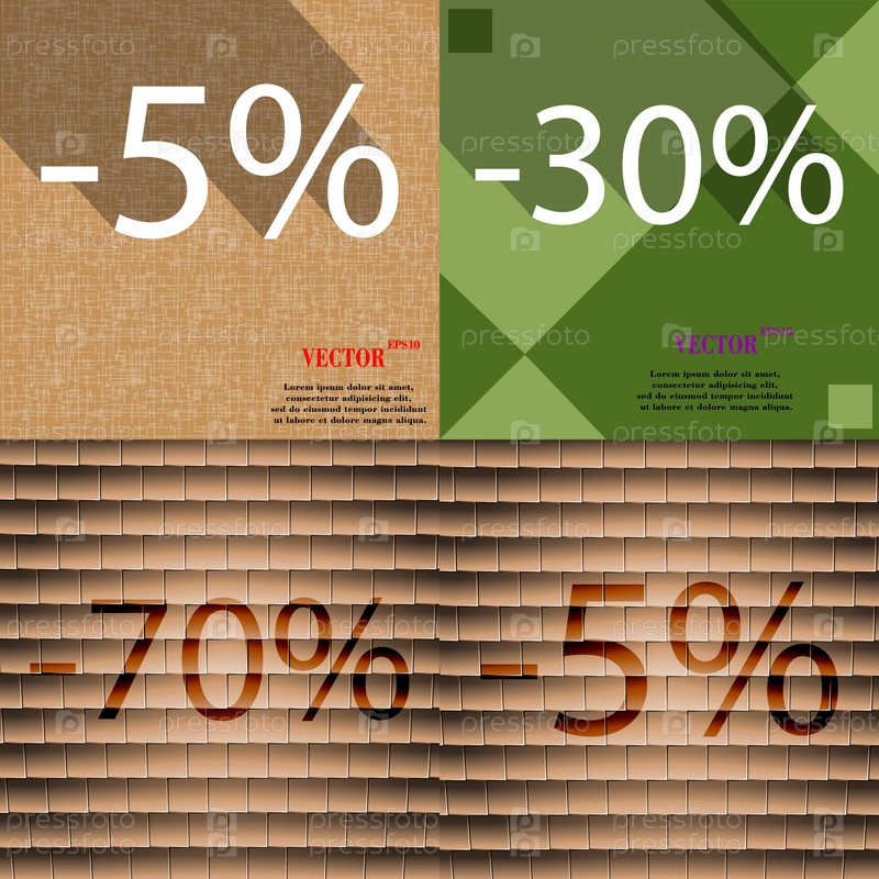 30, 70, 5 значок. Набор процент скидки на Абстрактные фоны. Вектор