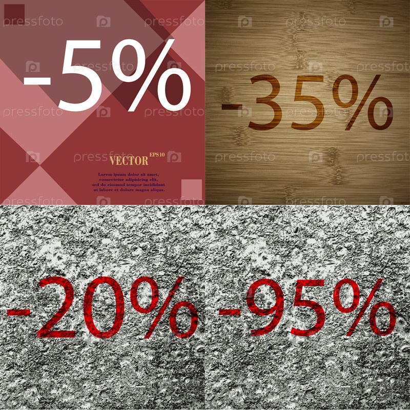 35, 20, 95 значок. Набор процент скидки на Абстрактные фоны. Вектор