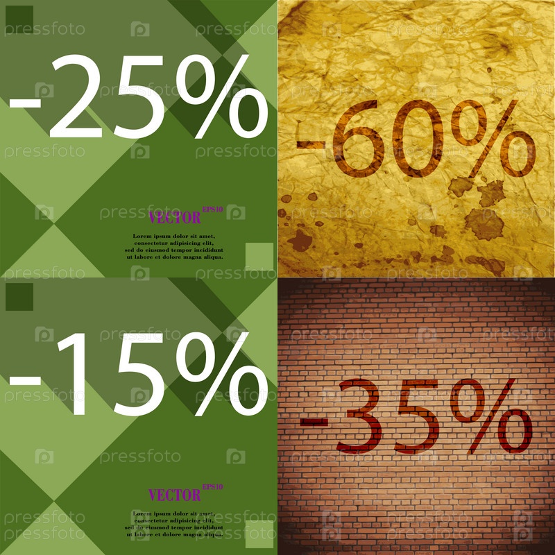 60, 15, 35 значок. Набор процент скидки на Абстрактные фоны. Вектор