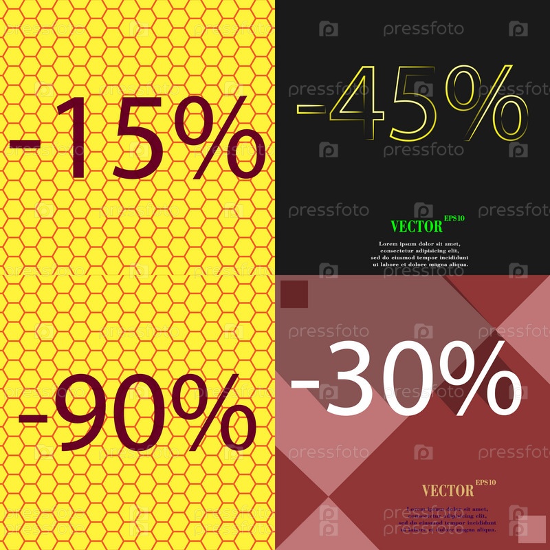 45, 90, 30 значок. Набор процент скидки на Абстрактные фоны. Вектор