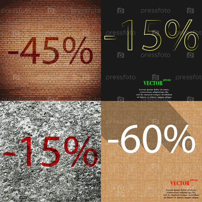 15, 60 значок. Набор процент скидки на Абстрактные фоны. Вектор