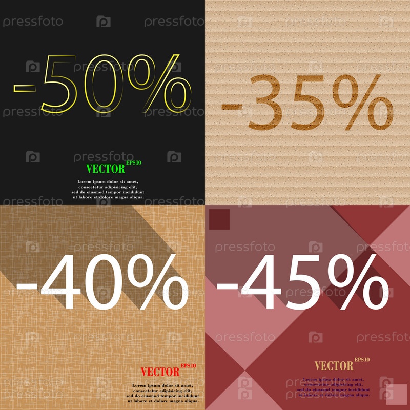 35, 40, 45 значок. Набор процент скидки на Абстрактные фоны. Вектор