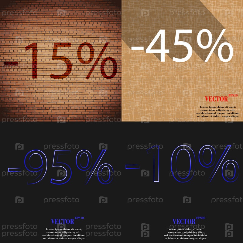 45, 95, 10 значок. Набор процент скидки на Абстрактные фоны. Вектор