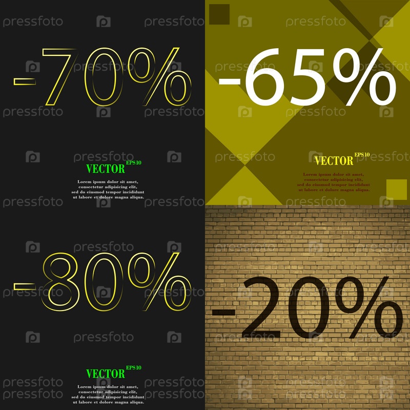 65, 80, 20 значок. Набор процент скидки на Абстрактные фоны. Вектор