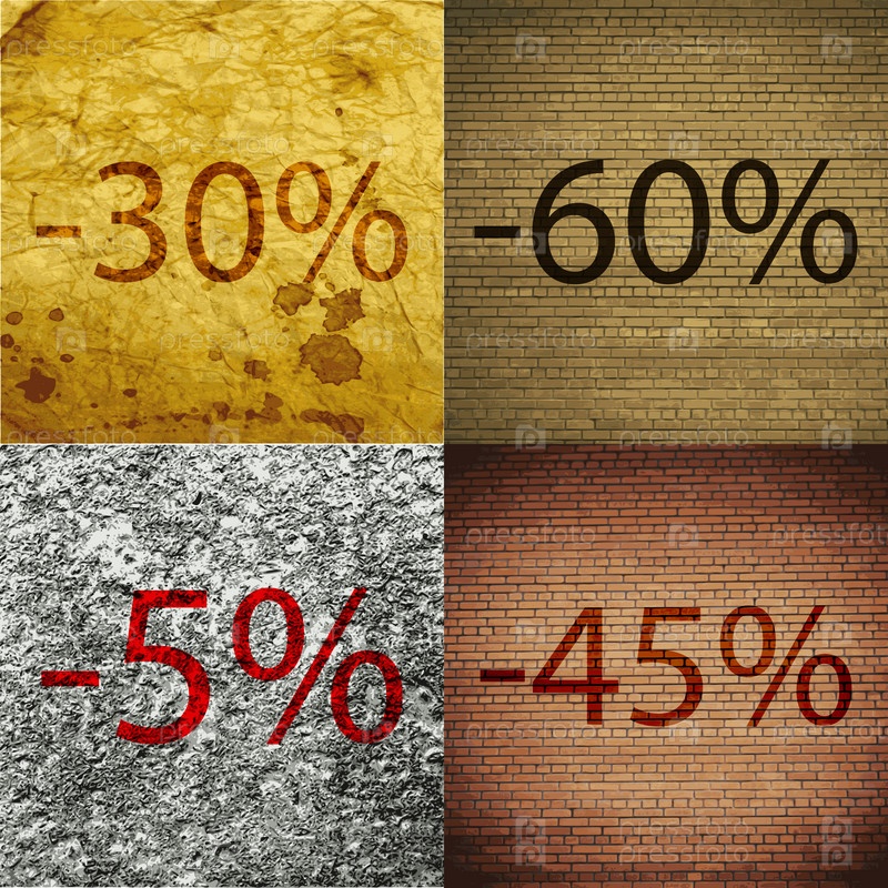 60, 5, 45 значок. Набор процент скидки на Абстрактные фоны. Вектор