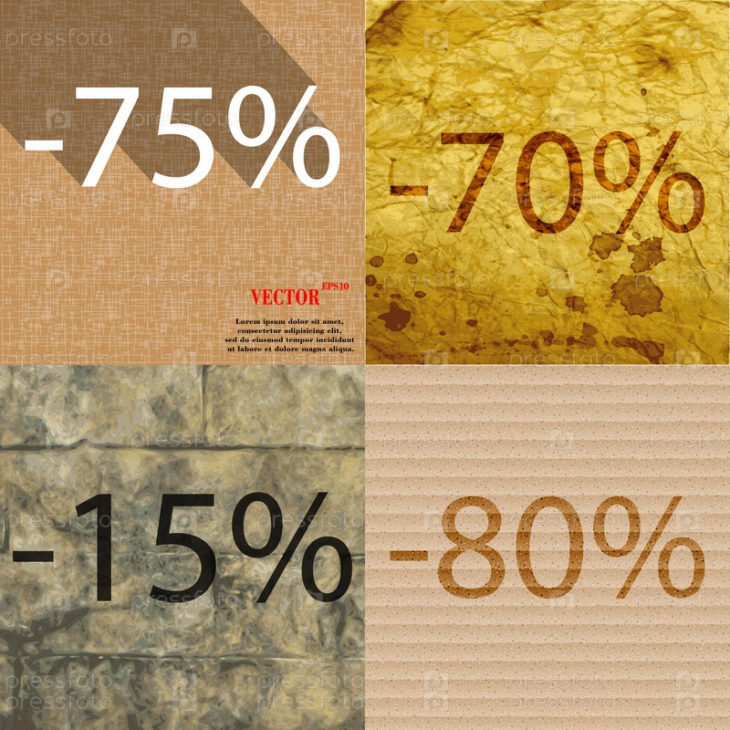 70, 15, 80 значок. Набор процент скидки на Абстрактные фоны. Вектор