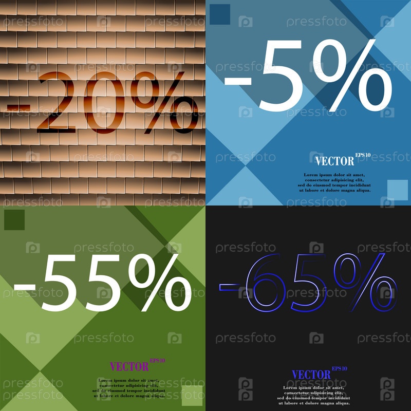 5, 55, 65 значок. Набор процент скидки на Абстрактные фоны. Вектор