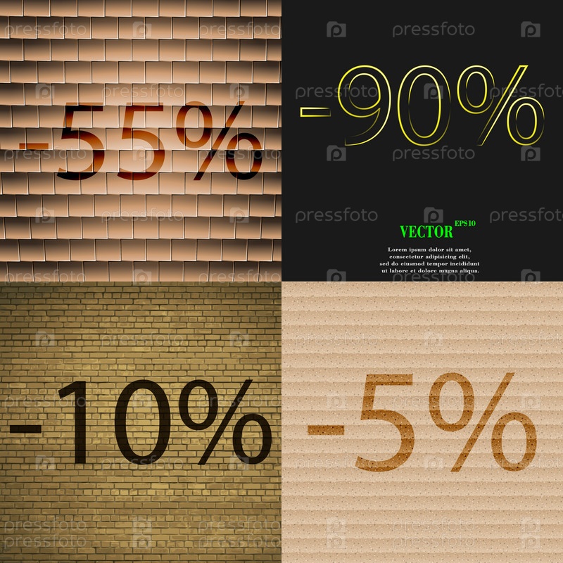 90, 10, 5 значок. Набор процент скидки на Абстрактные фоны. Вектор