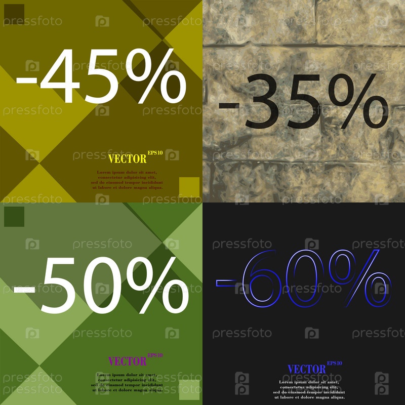 35, 50, 60 значок. Набор процент скидки на Абстрактные фоны. Вектор