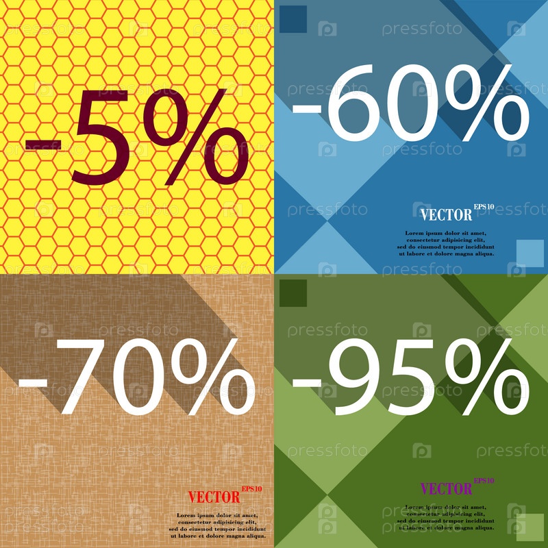 60, 70, 95 значок. Набор процент скидки на Абстрактные фоны. Вектор