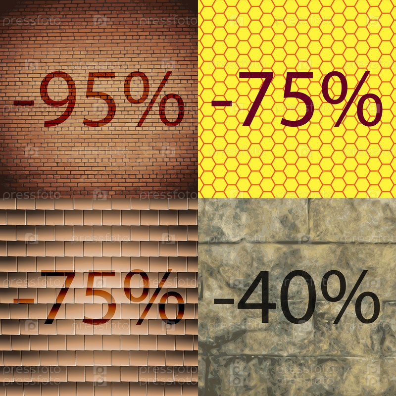 75, 40, значок. Набор процент скидки на Абстрактные фоны. Вектор