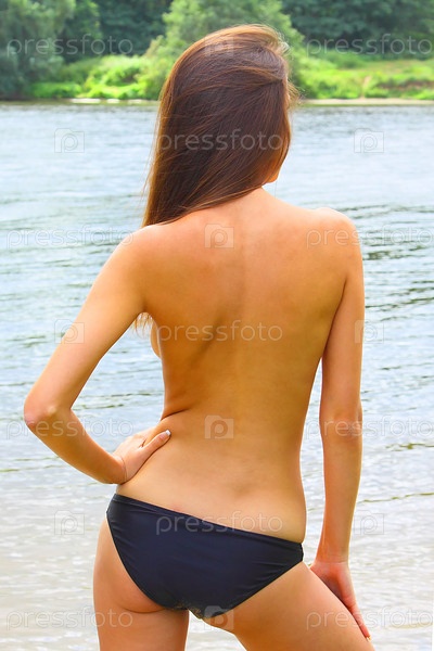 Полуобнаженная девушка на пляже