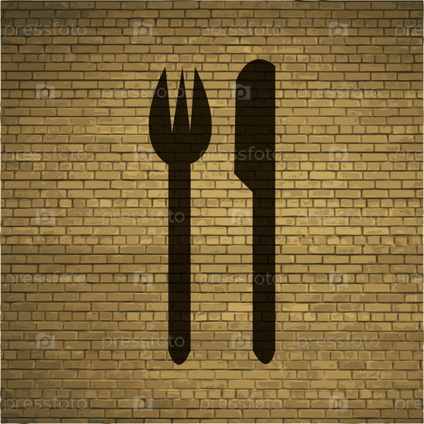 Столовые приборы, нож, вилка. Плоский современный веб кнопку и пространства для вашего текста