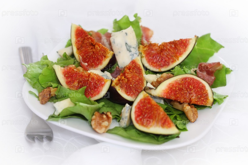 Салат с инжиром, голубым сыром, ветчиной и грецким орехом