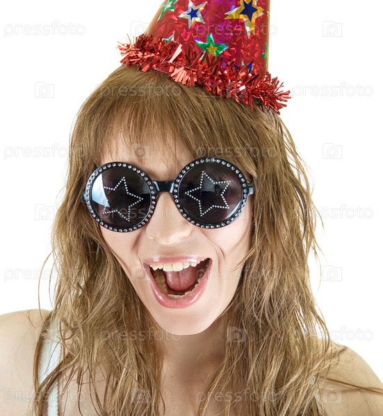 Красивая девушка в очках и в колпаке на белом фоне