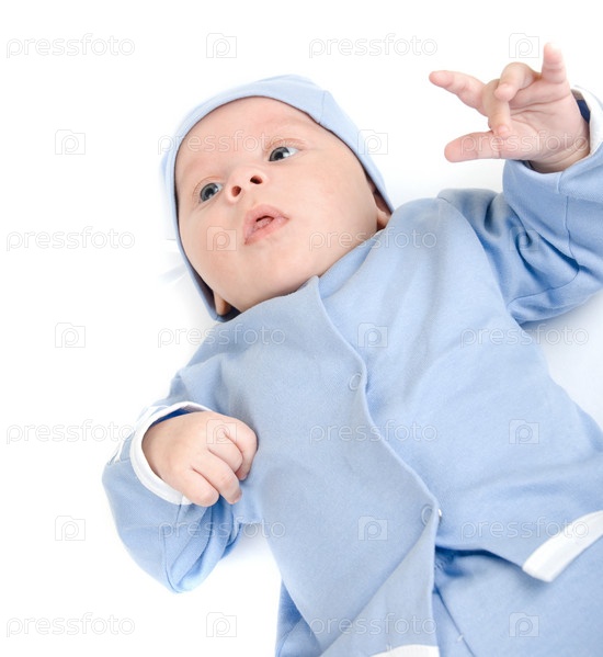 Портрет младенца в голубой одежде на белом фоне