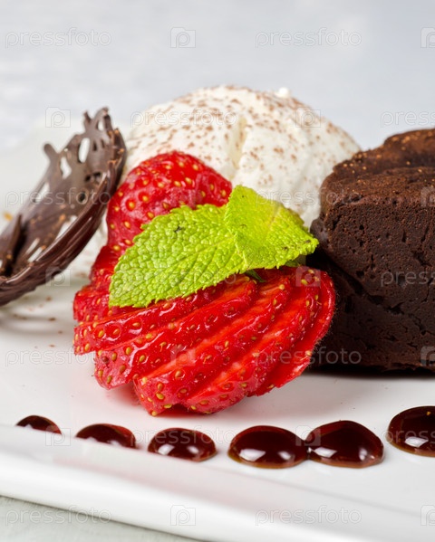 Шоколадный пирог с клубникой и мороженым