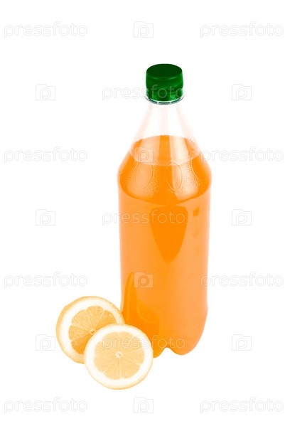 Апельсиновый сок в бутылке на белом фоне