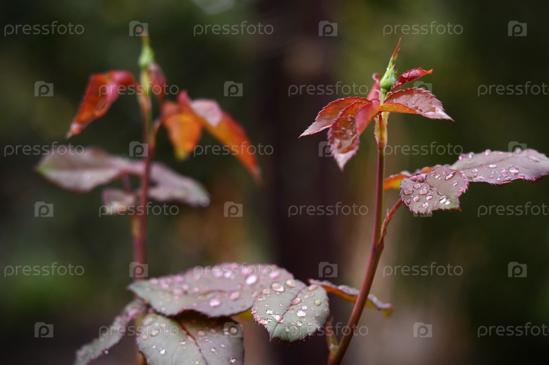 Листья растения в каплях крупным планом