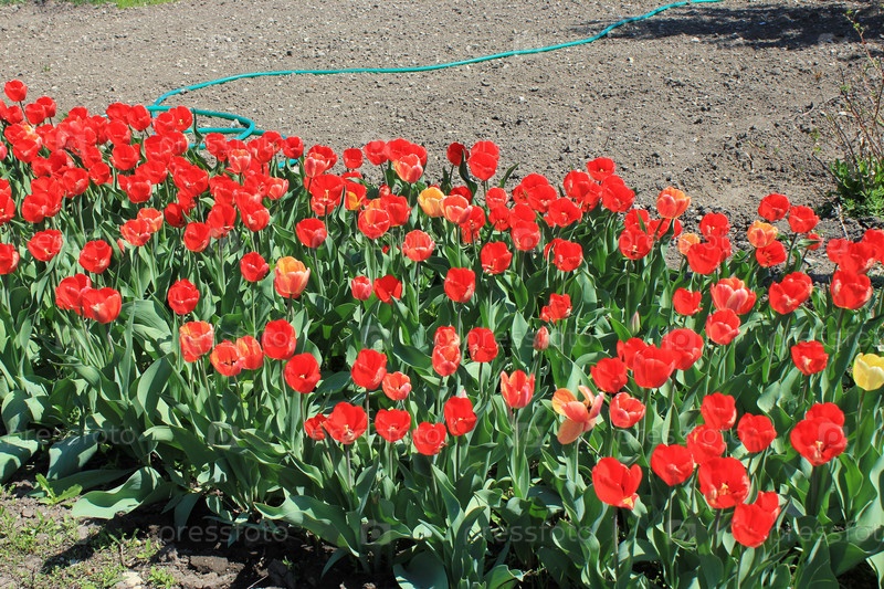 Цветущие тюльпаны на грядке